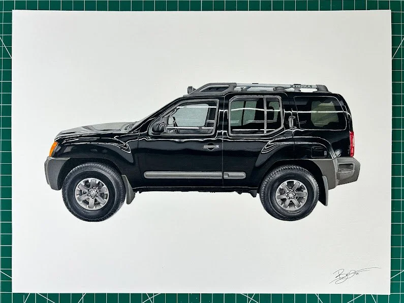 Prices start at $500 for car commissions with a minimum size of 12”x16”. This does not include framing or shipping fees.